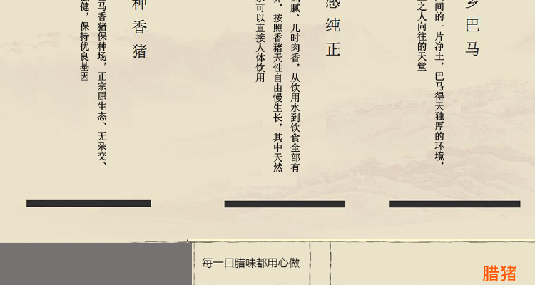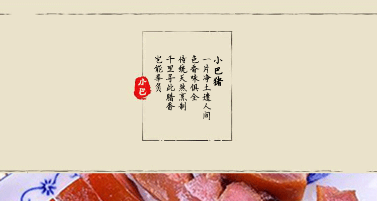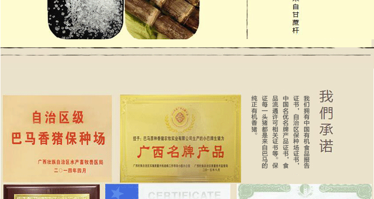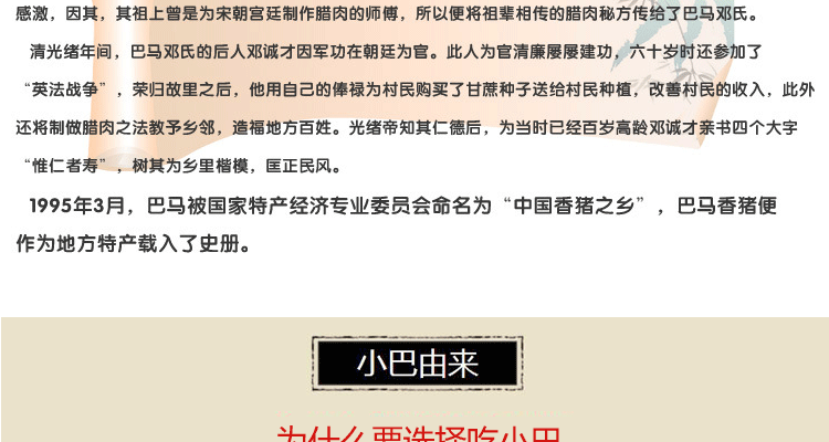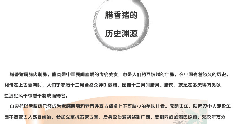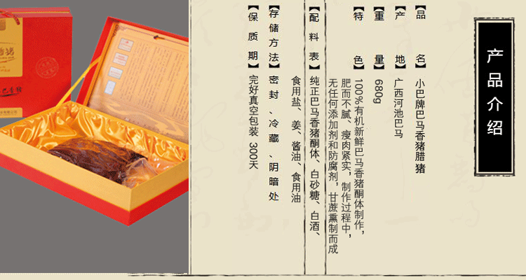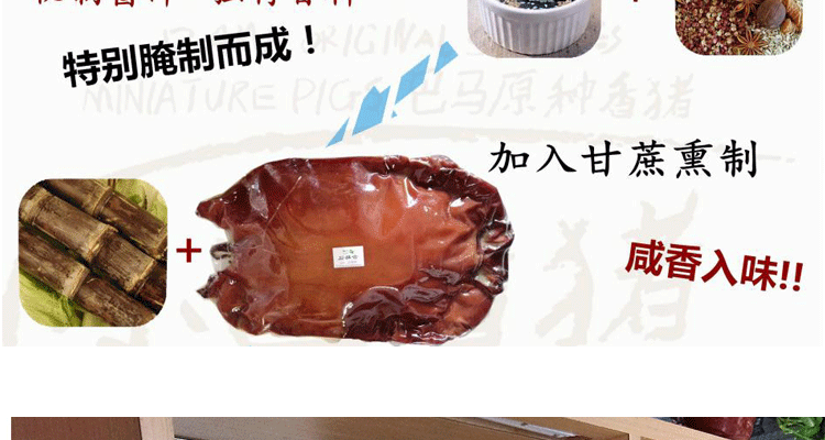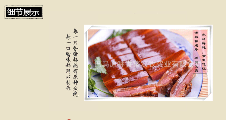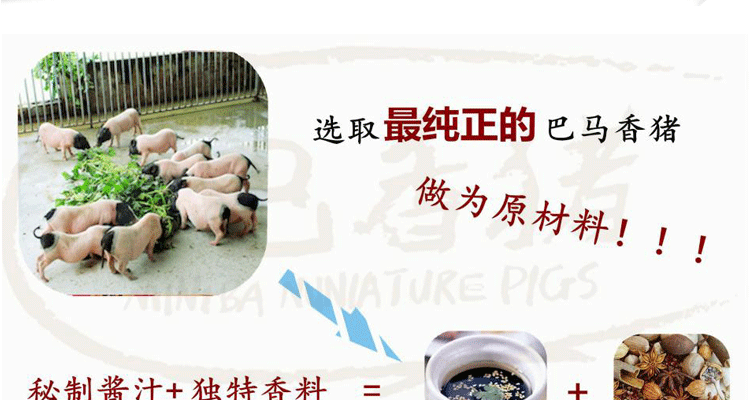 100%有机巴马香猪肉制,传统工艺蔗熏而成。