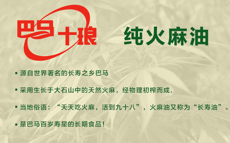 当地俗语:“天天吃火麻,活到九十八”,火麻油又称为“长寿油”。