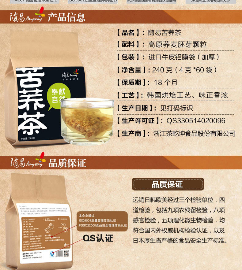 烘焙型60袋 好吃又好喝 出口日本 蕴含苦荞精华 粒粒香浓