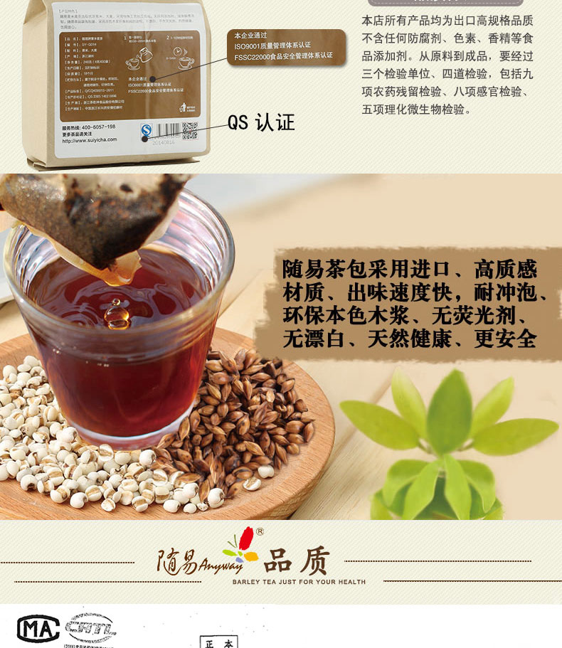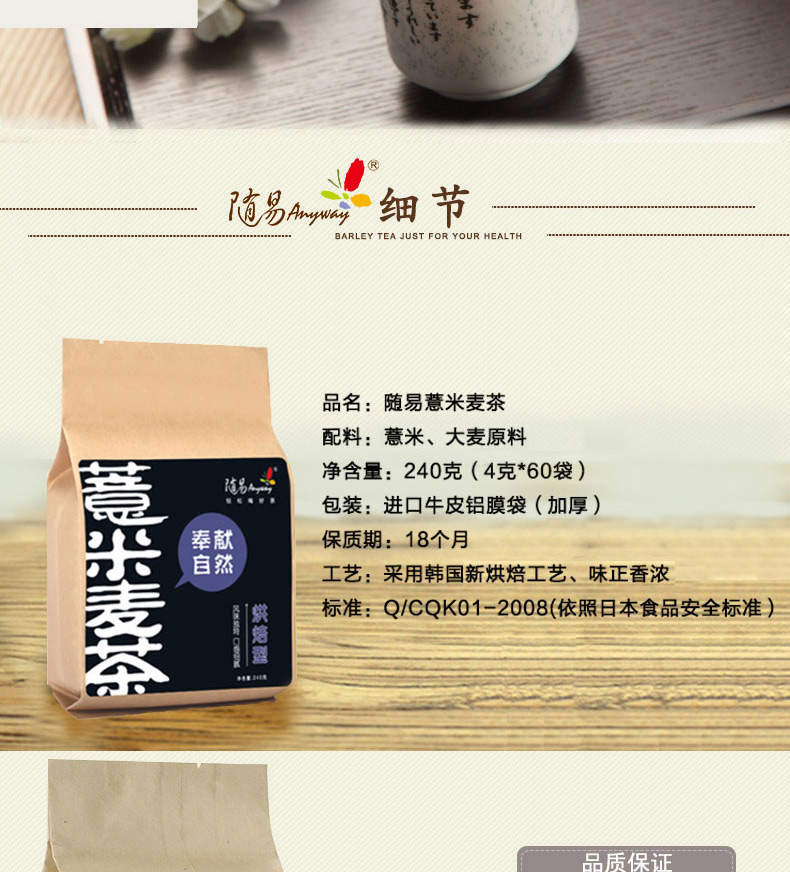 【随易】薏米麦茶 薏米茶祛茶湿茶湿热湿气去袋240g