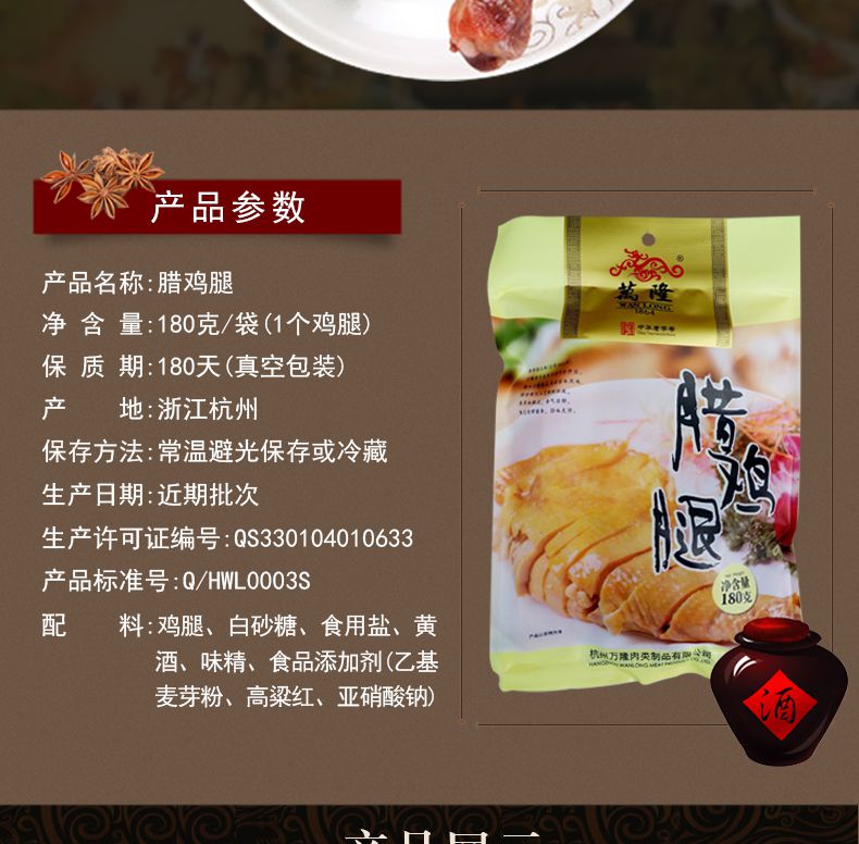【万隆】杭州老字号 腊鸡腿 180g