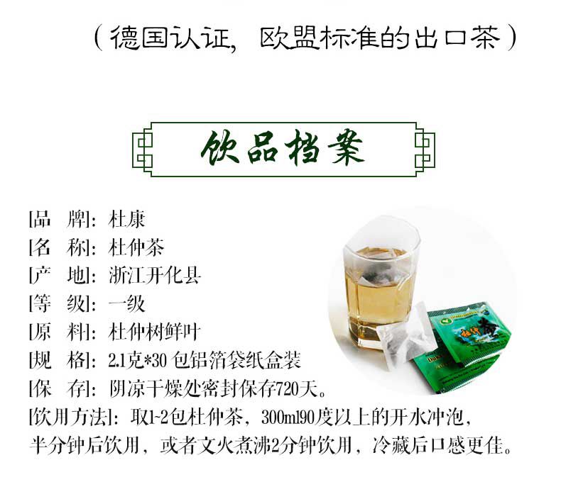 【杜康茶业】衢州特产 袋泡杜仲茶63g精装