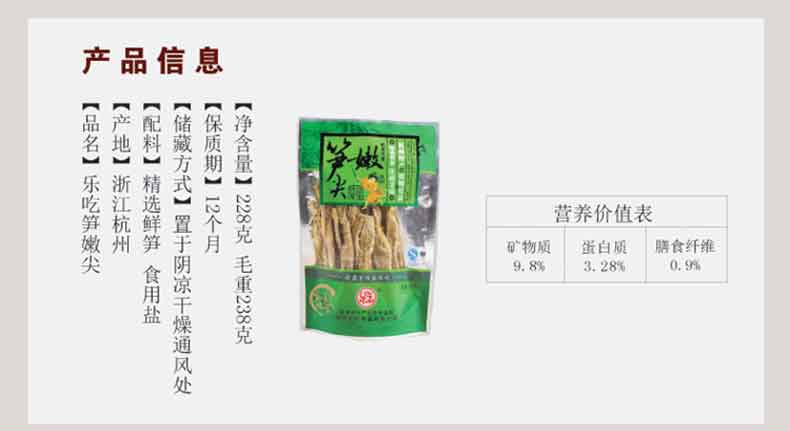 【乐吃】杭州特产 临安天目山嫩笋尖228g 袋装