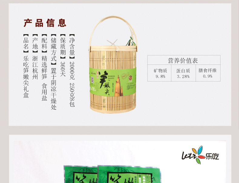 【乐吃】杭州临安特产 正宗干货竹笋竹篓笋干250g*8篓