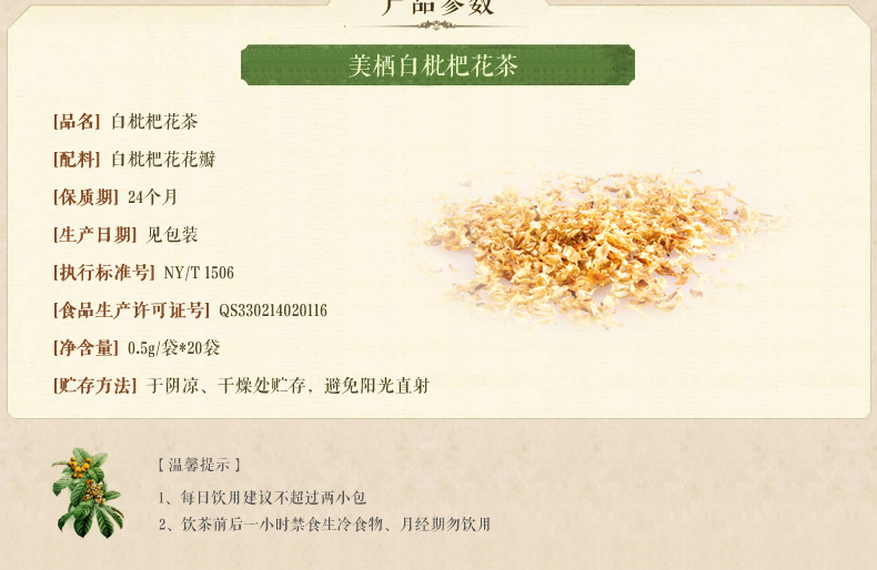 【美栖】宁波特产 高端瓷白 白枇杷花茶10g 礼盒 三角袋独立包装