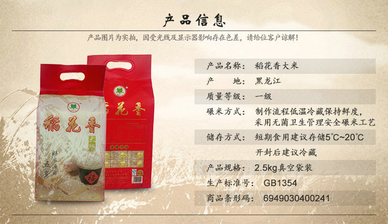 【铭宇】真空包装原生态五常稻花香2.5kg