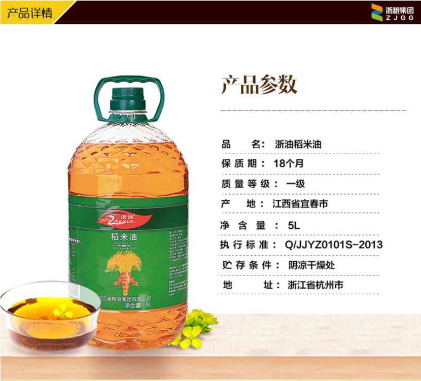 浙粮食用油粮植物油油米糠油稻米油5L