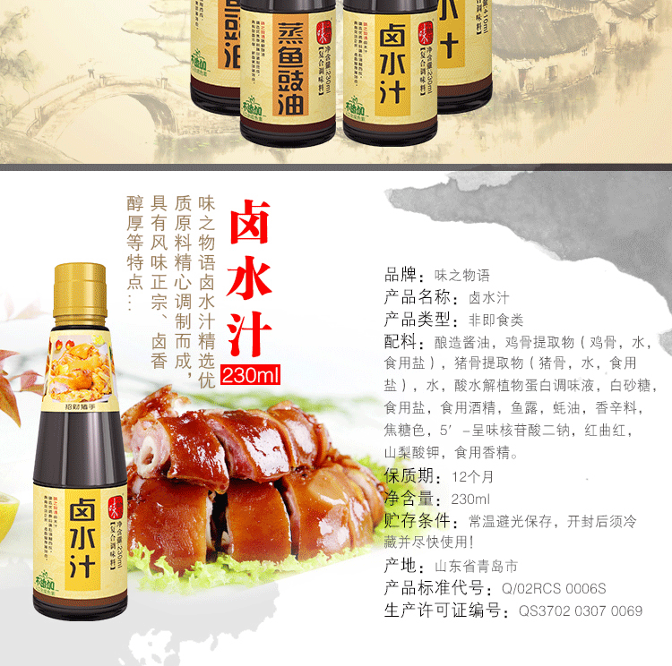 味之物语 卤水汁230ml 酱油调料烹饪卤肉料 卤菜料做菜烹调
