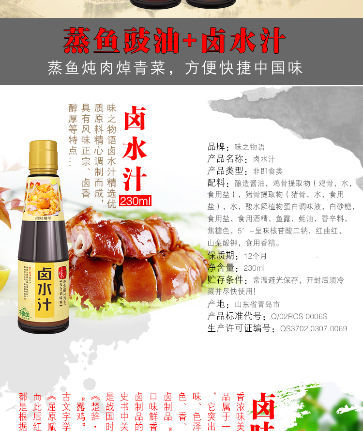味之物语 蒸鱼豉油230ml/瓶+卤水汁230ml/瓶 组合装 蒸鱼卤味搭档