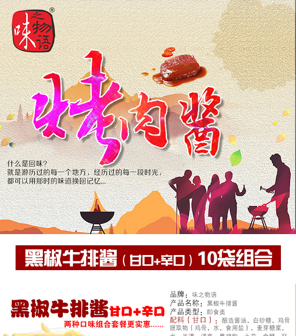 味之物语 黑椒牛排酱30g*10袋组合装 两种口味(甘口辛口)黑椒汁