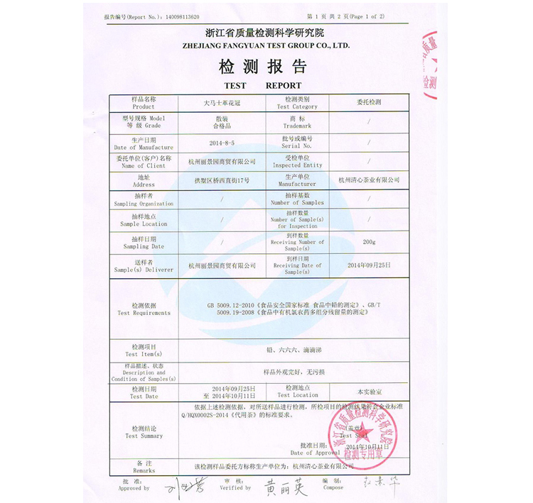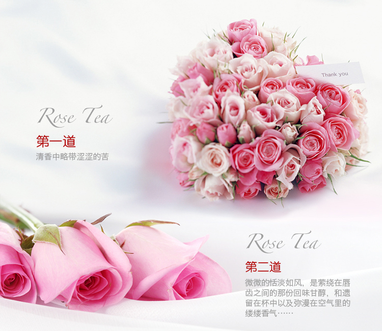 花朵颜色鲜艳,汤清茶香 冲泡花香四溢,如闻到鲜花香味。口感清爽,回味甘甜。