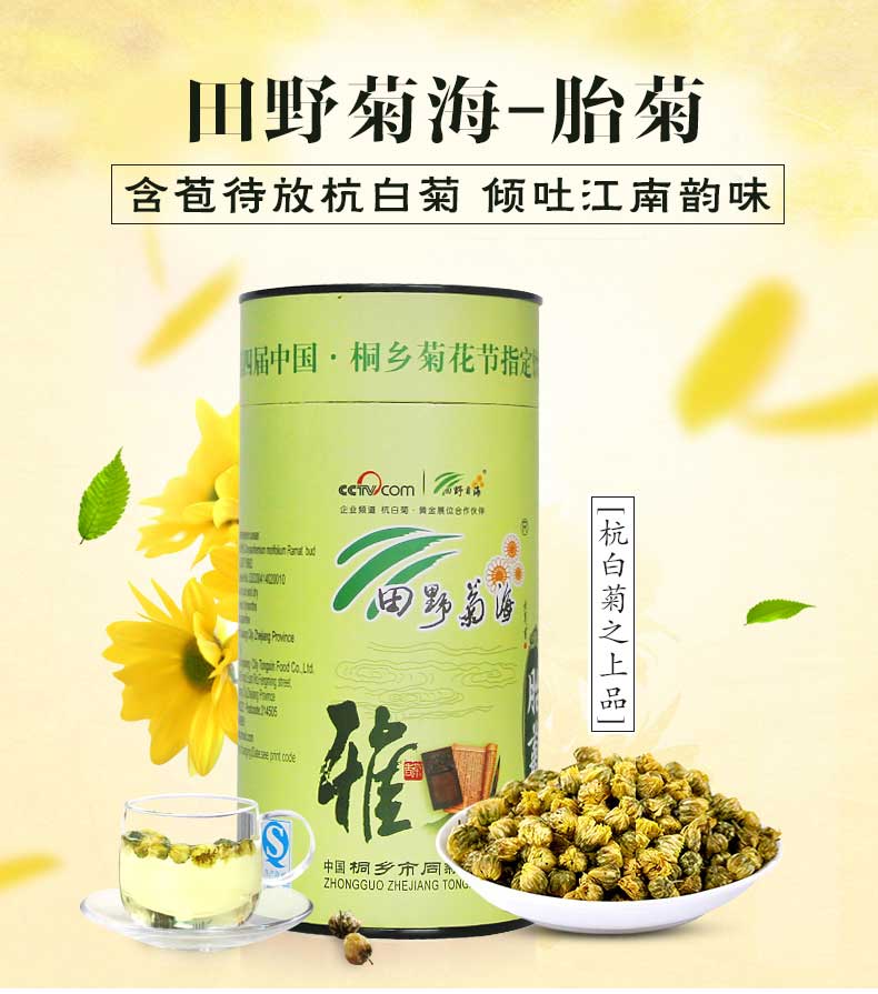 【田野菊海】嘉兴桐乡特产 杭白菊花茶 胎菊72g
