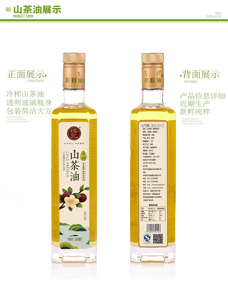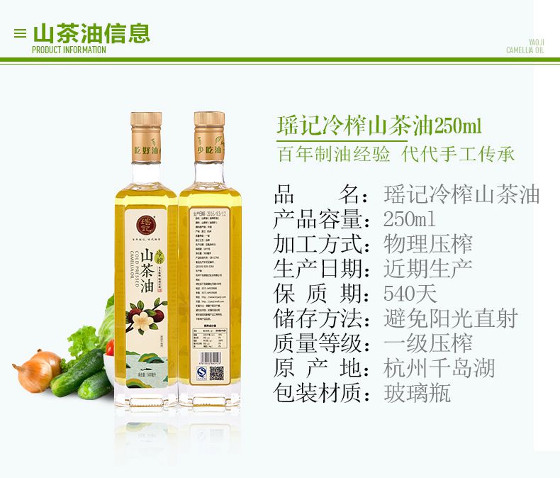 【瑶记】杭州特产 茶籽油野生山茶油250ml