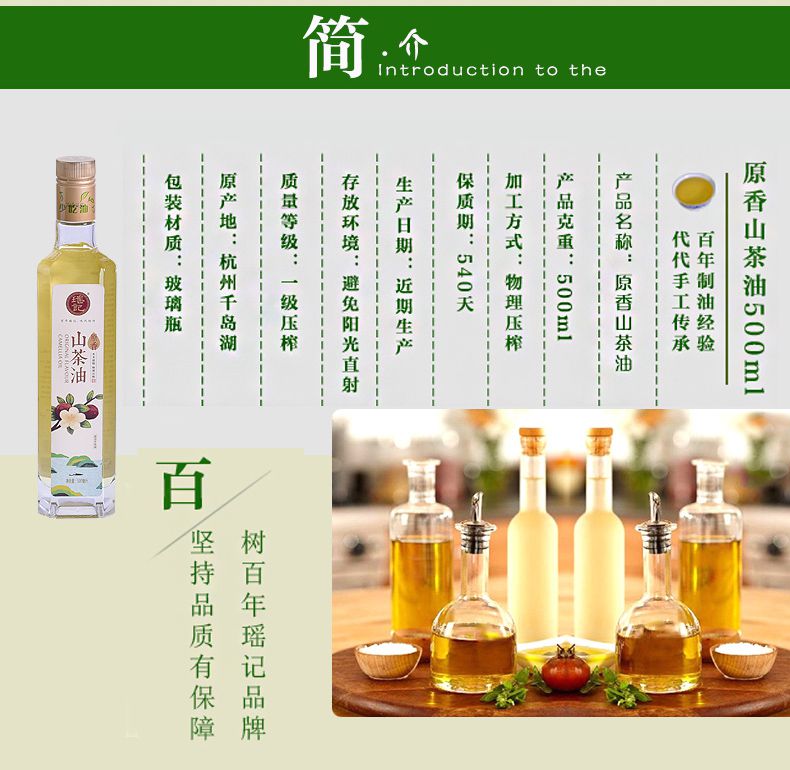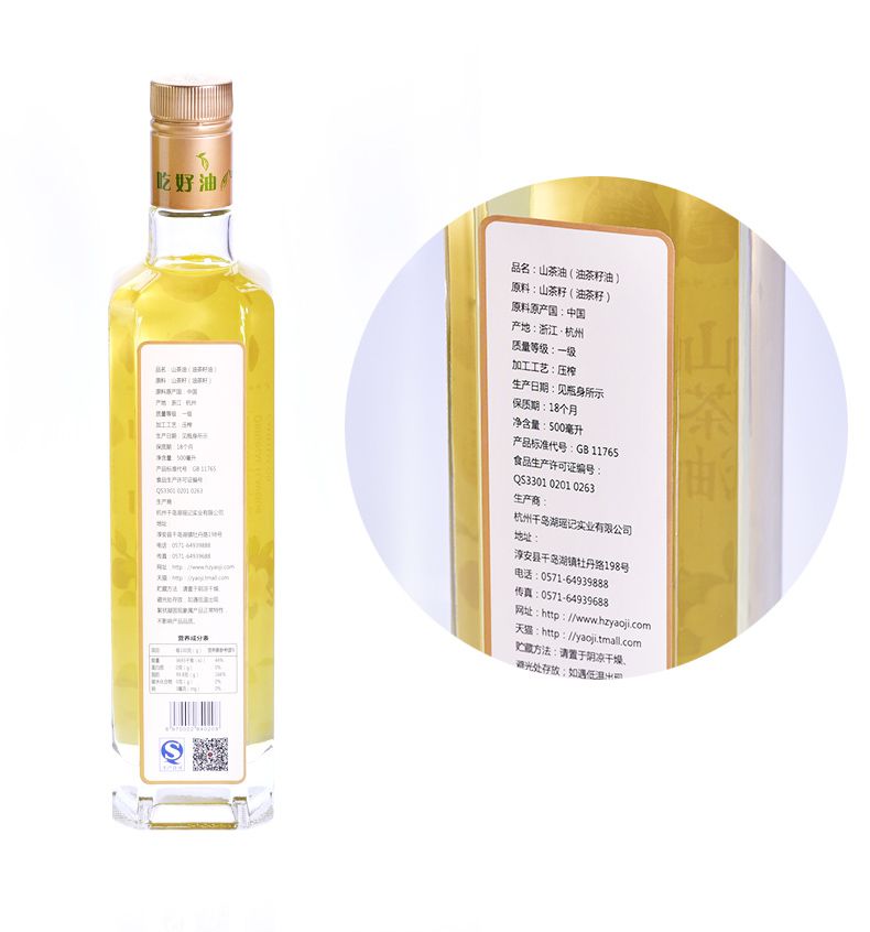 【瑶记】杭州特产 原香山茶油500ml