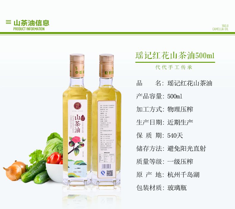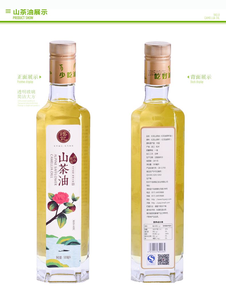 【瑶记】杭州特产 茶籽油红花山茶油500ml