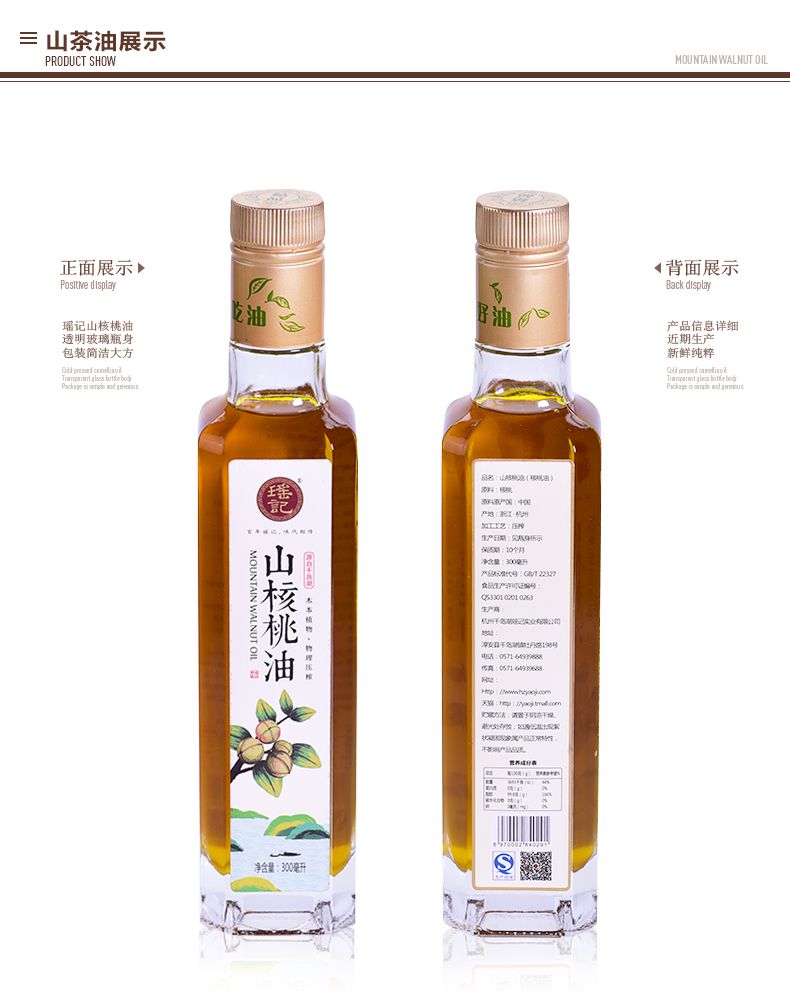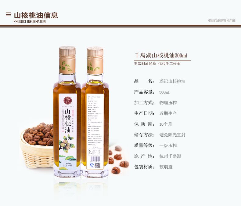 孕妇山核桃油宝宝核桃油物理压榨凉拌油食用油