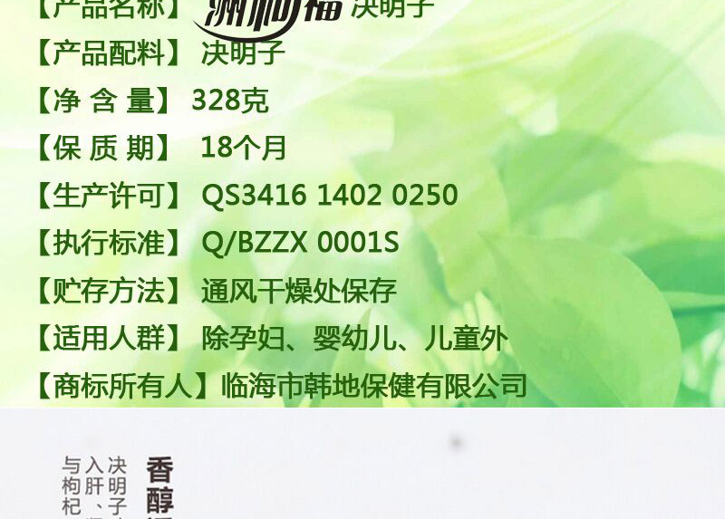 【洲柯福】台州特产 养生健康 决明子茶328g