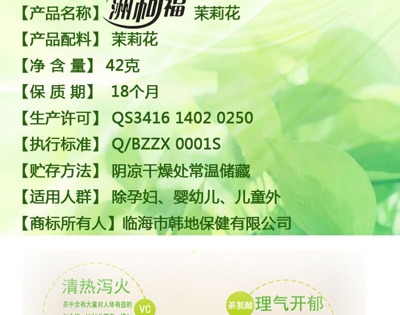 【洲柯福】台州特产 养生健康 茉莉花茶42g