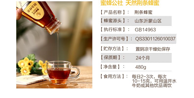 【蜂蜜公社】杭州特产 天然成熟白荆条蜂蜜480g 瓶装