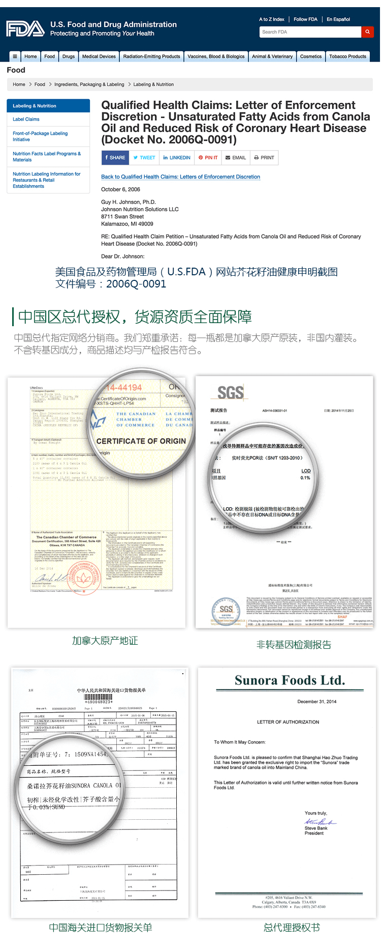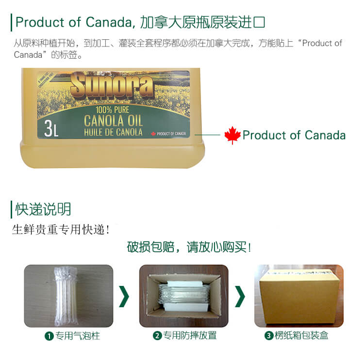 加拿大原产 桑诺拉芥花籽油3000ml 江浙沪包邮
