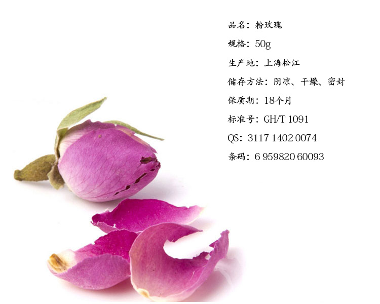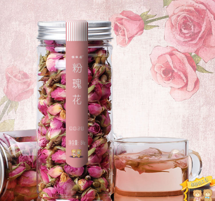 (怡枚园)法兰西玫瑰 粉玫瑰50g*1罐 铝盖罐 花草茶 茶叶 休闲饮品 泡茶