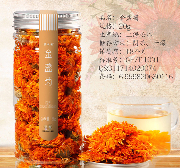 (怡枚园)金盏菊20g*1罐 铝盖塑罐 花草茶 茶叶 饮品