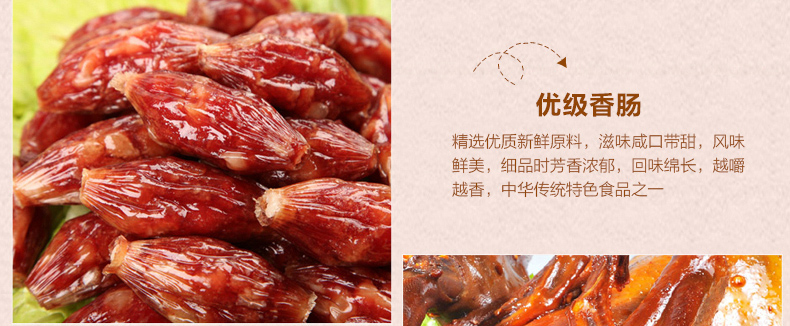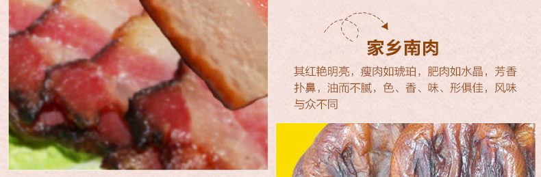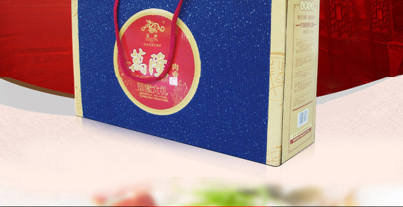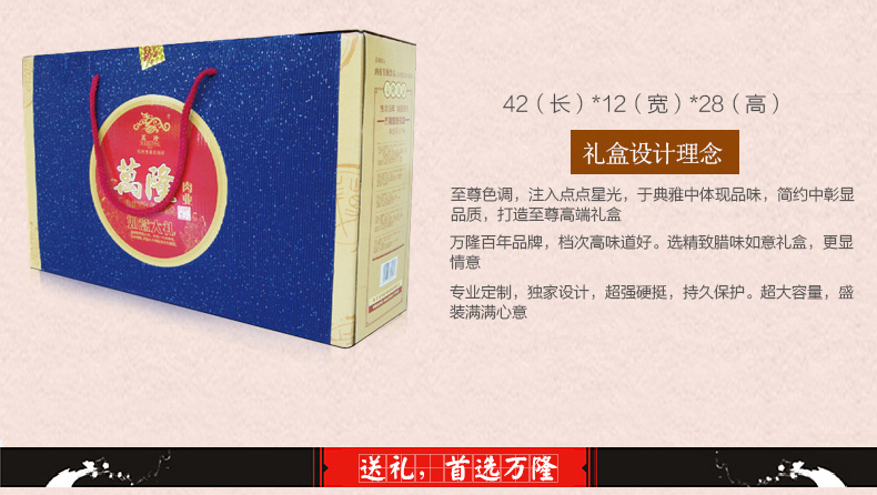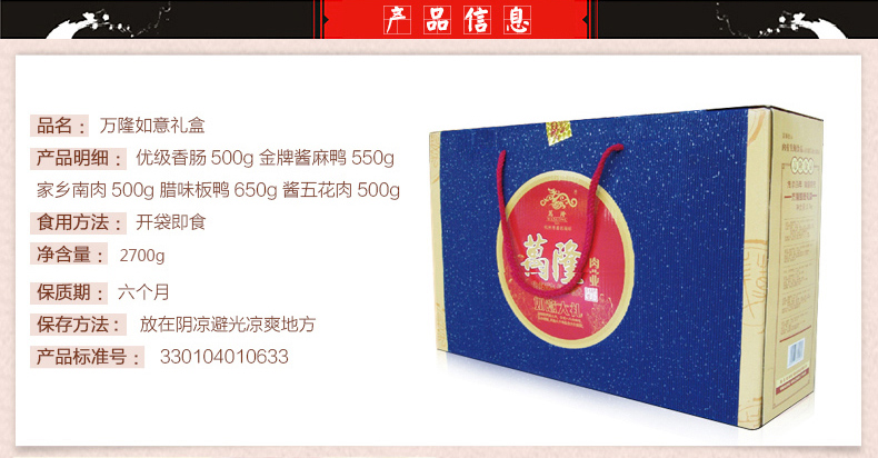 礼盒包括:金牌酱麻鸭550g*1+优级香肠500g*1+家乡南肉500g*1+腊味板鸭650g*1+