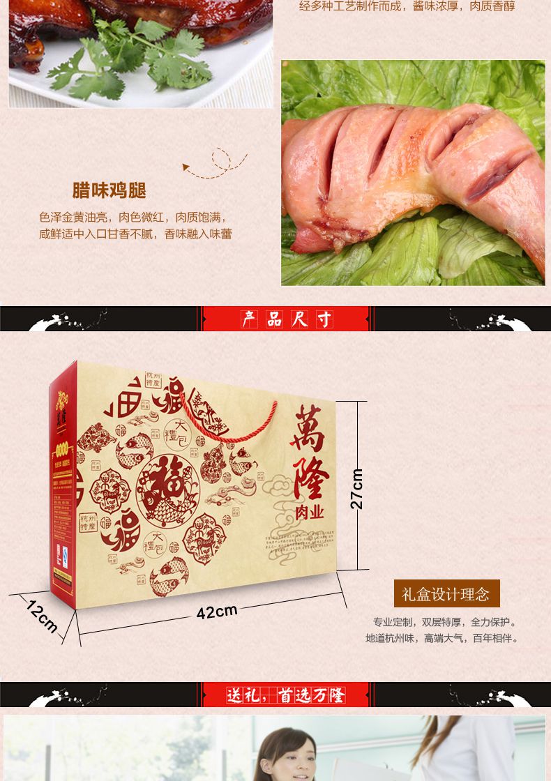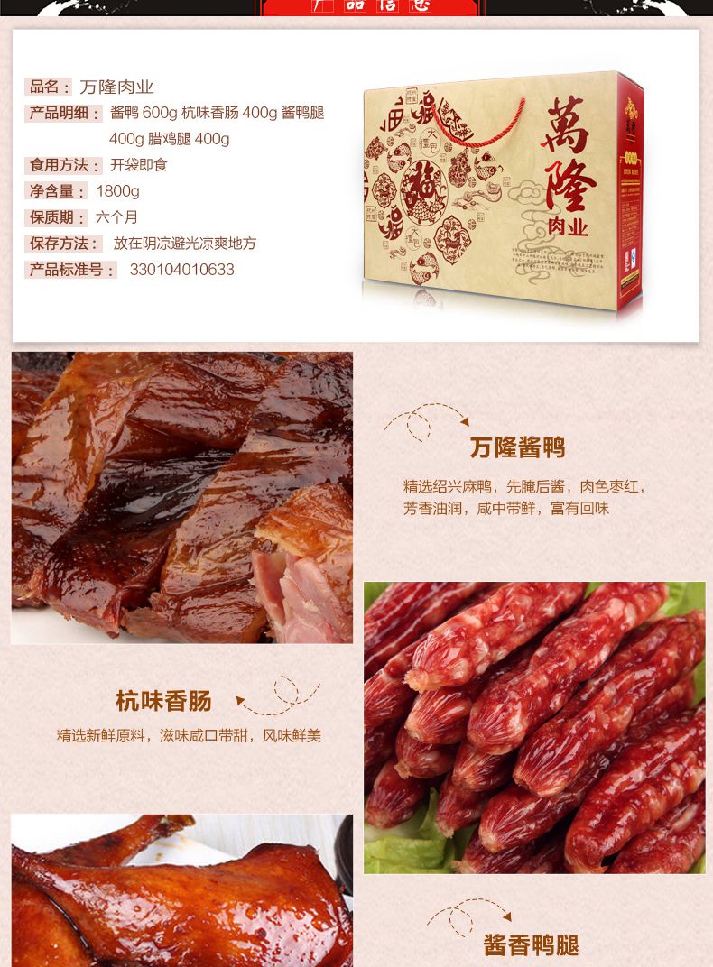 【万隆】杭州老字号 酱鸭香肠1800g 福到礼盒