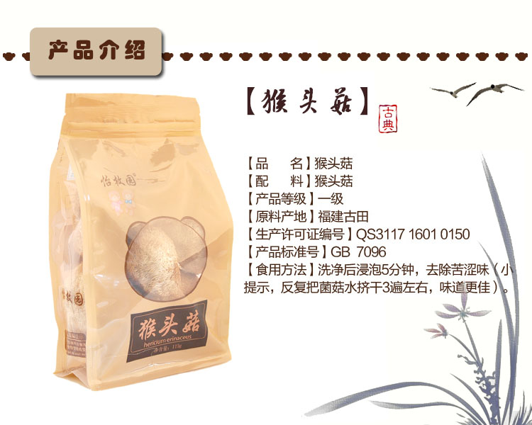 (怡枚园)猴头菇 110g/袋 干货 菌菇类 养胃佳品