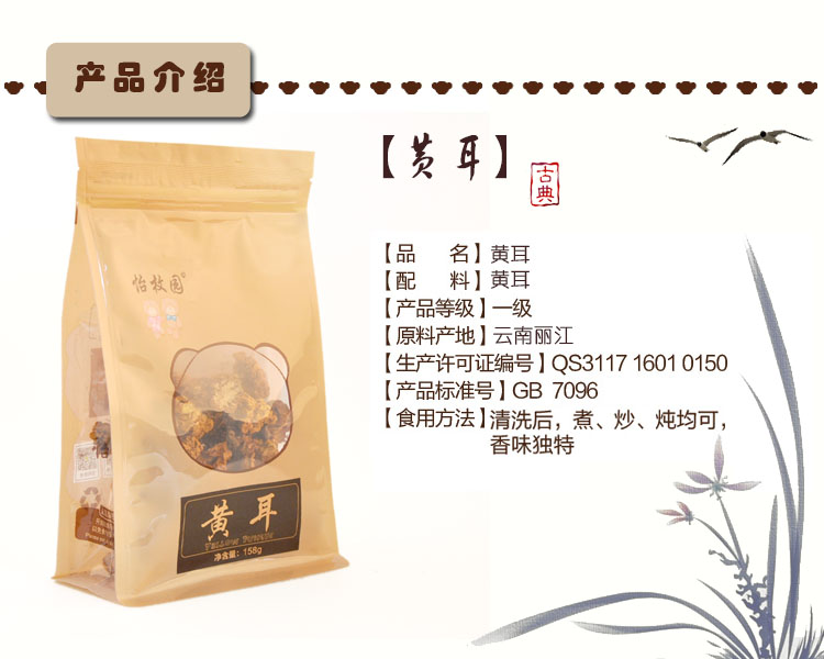(怡枚园)黄耳158g/袋 金耳 干货 菌菇 南北货 黄木耳 银耳 脑耳 木