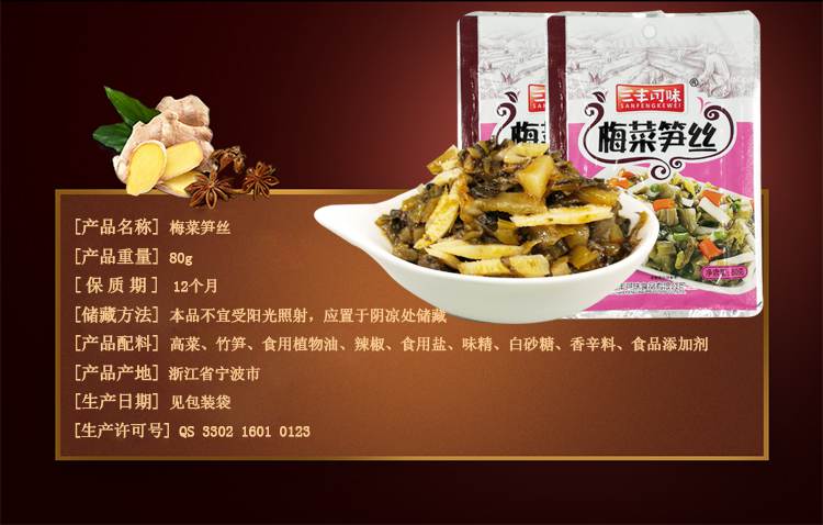 【三丰可味】宁波特产 梅菜笋丝咸菜酱菜下饭菜80g