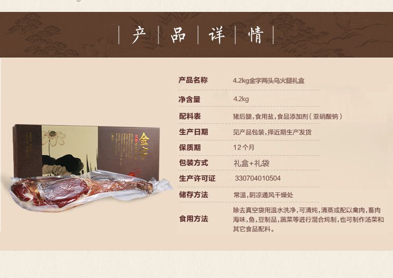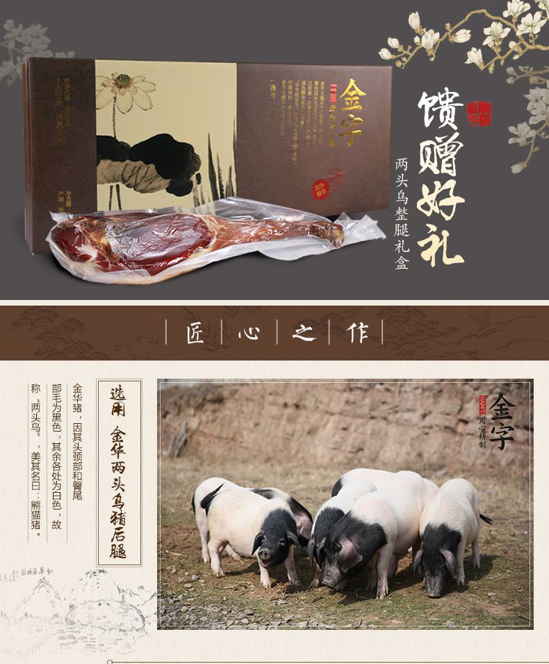 【金字】金华特产 两头乌整腿 金华火腿4.2kg 中秋礼盒高档