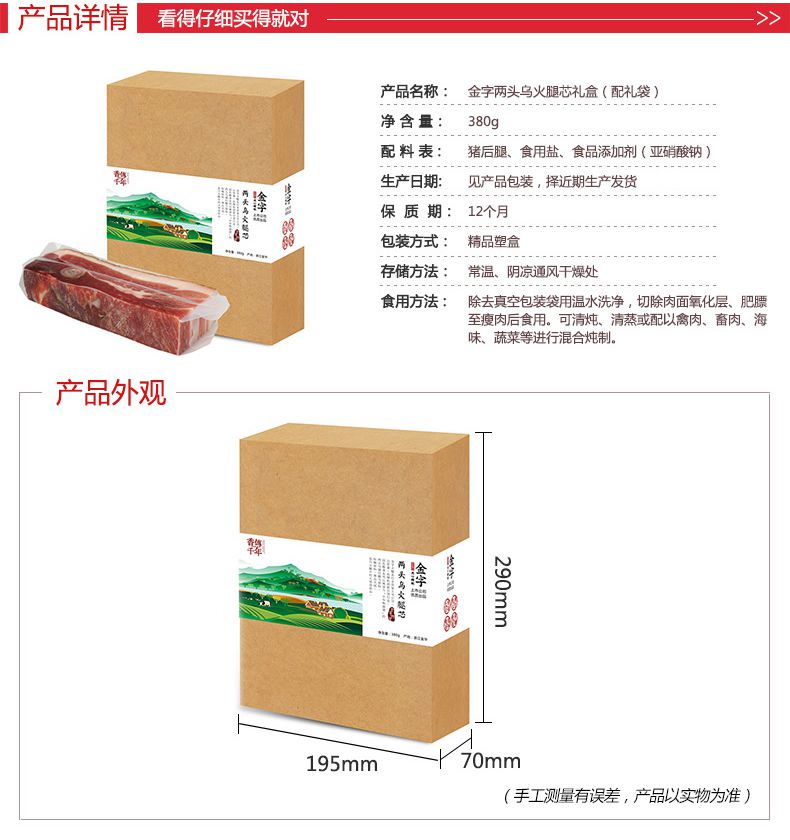 【金字】金华特产 金华火腿两头乌精品火腿肉380g