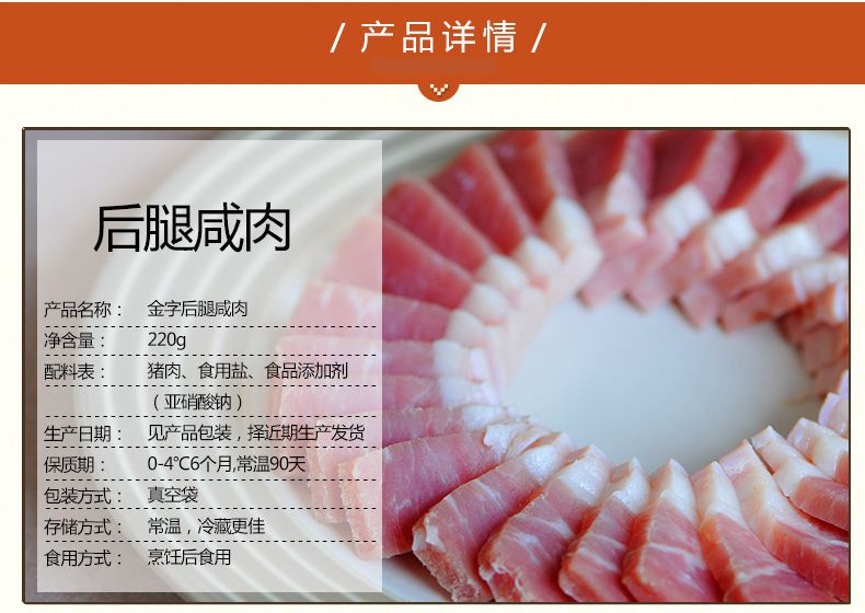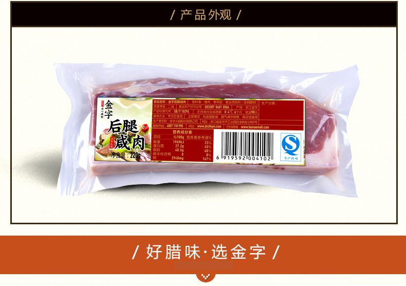 【金字】金华特产 无骨后腿肉腌腊肉 火腿家常后腿咸肉220g