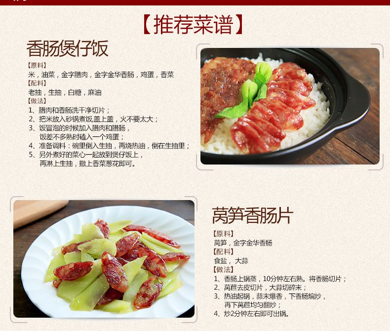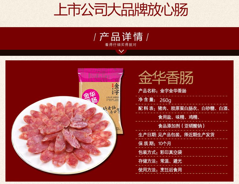 【金字】金华特产 腌腊肉火腿广式广味 香肠腊肠260g*2