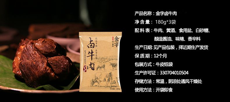 【金字】金华特产 熟食卤味五香味卤牛肉块180gX3包