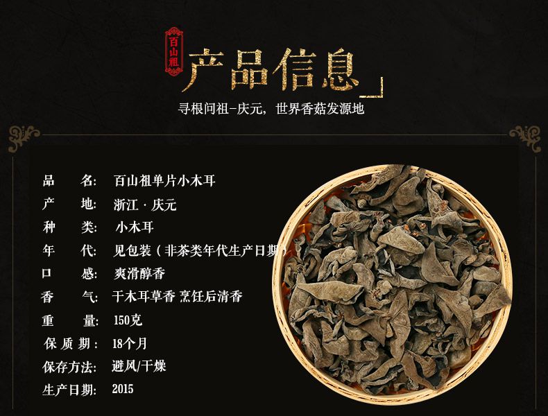 【百山祖】丽水特产 秋木耳黑木耳干货小碗耳深山木耳150g/袋