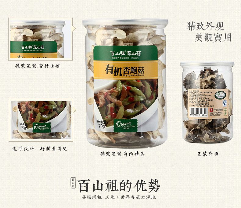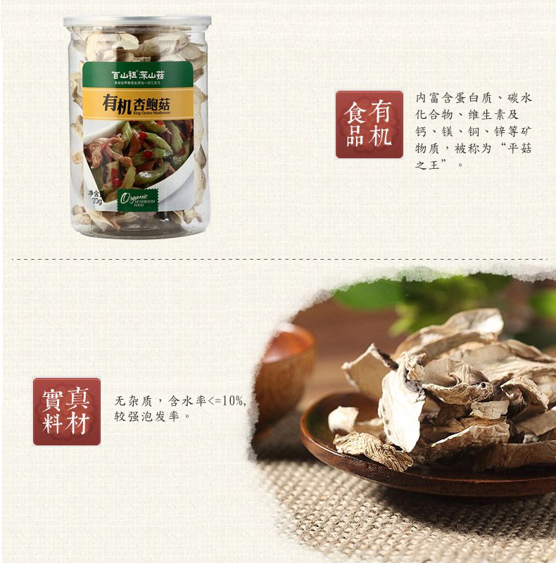 【百山祖】丽水特产 肉厚食用菌菇 黑面雪茸有机杏鲍菇70g*1罐