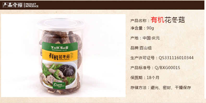 【百山祖】丽水特产 有机花冬菇花菇蘑菇野生椴木干香菇90g