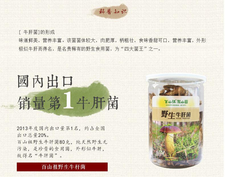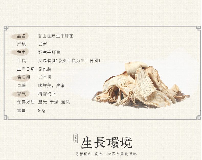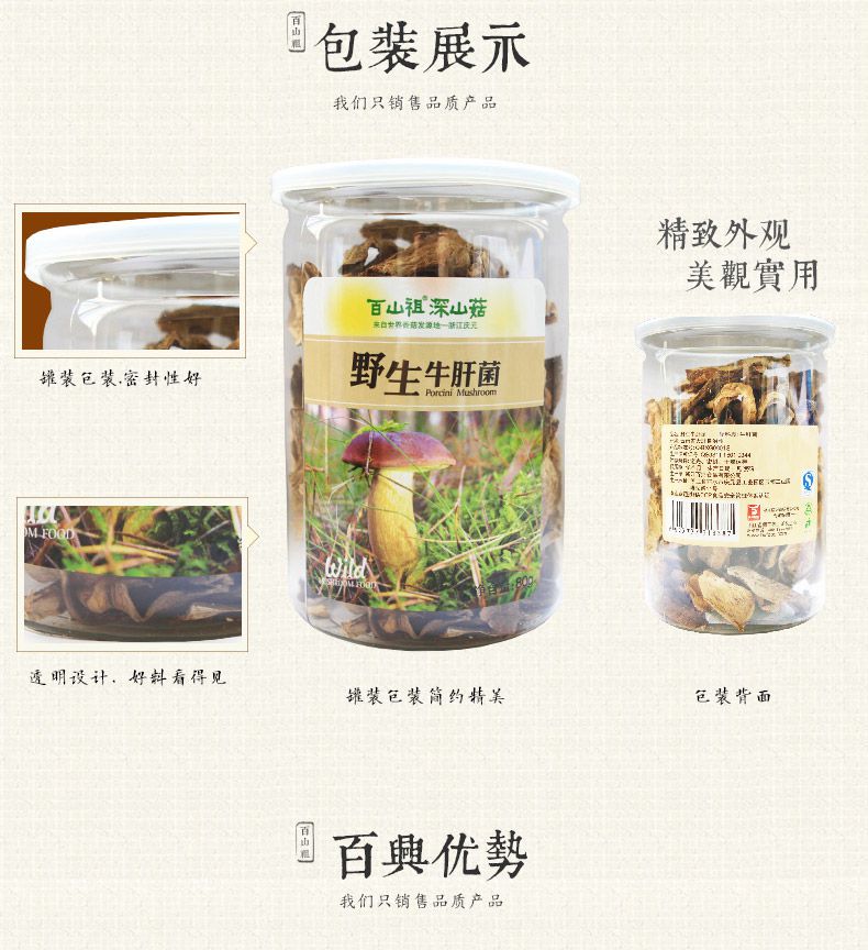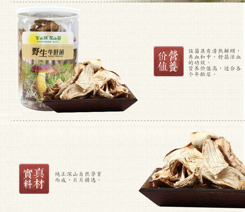 【百山祖】丽水特产 食用菌干珍惜菇类 野生牛肝菌80g