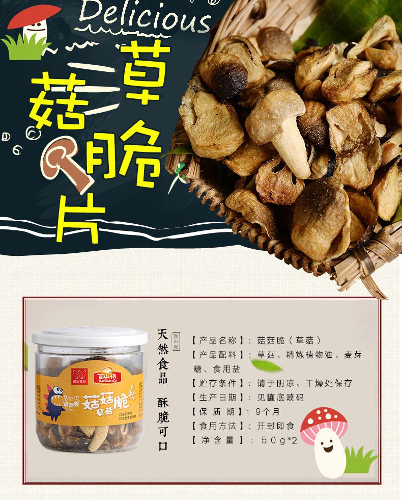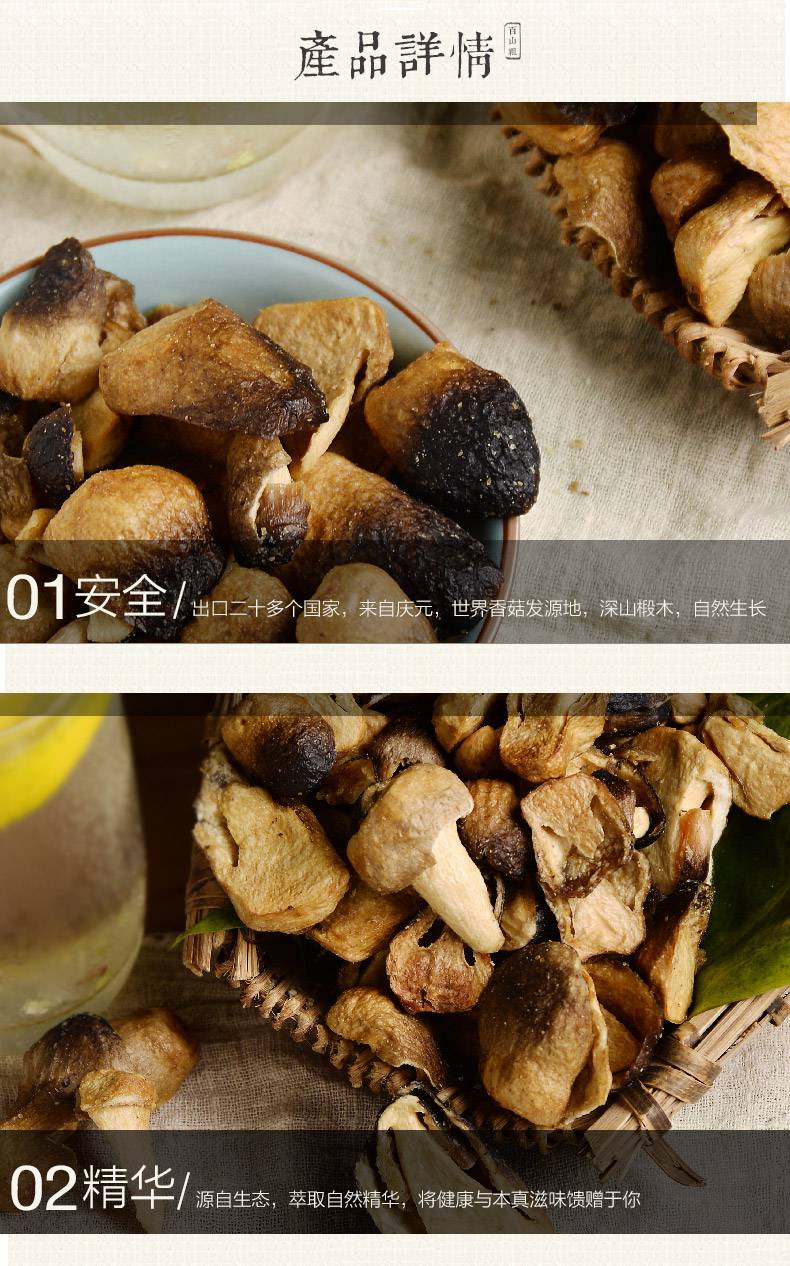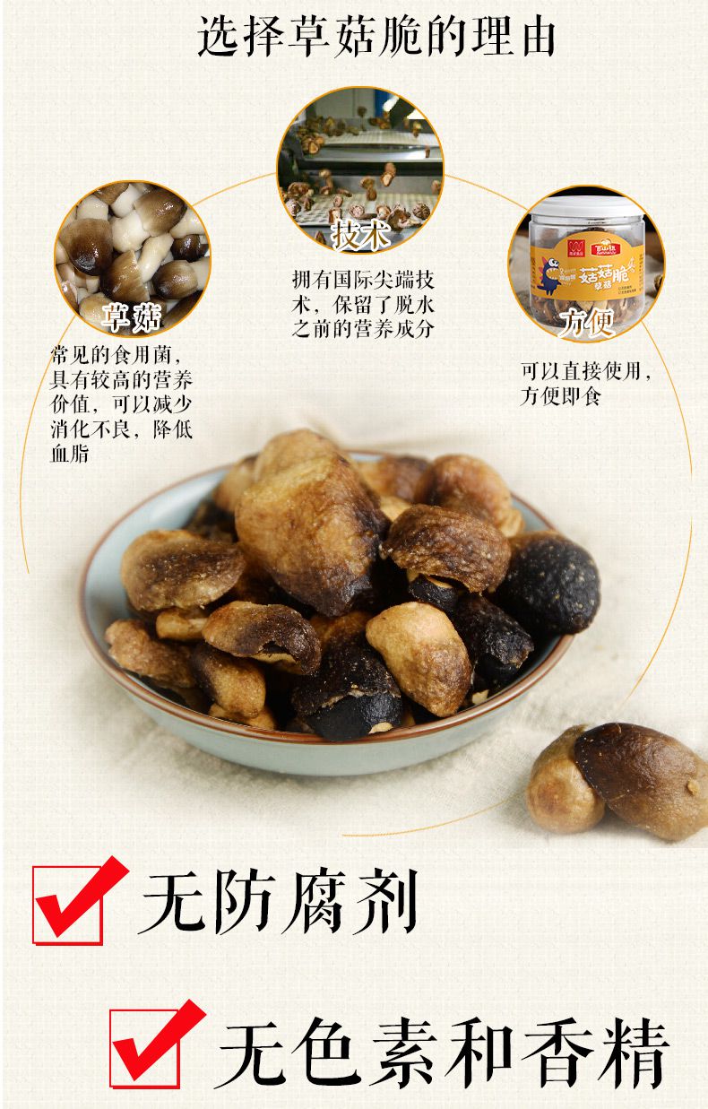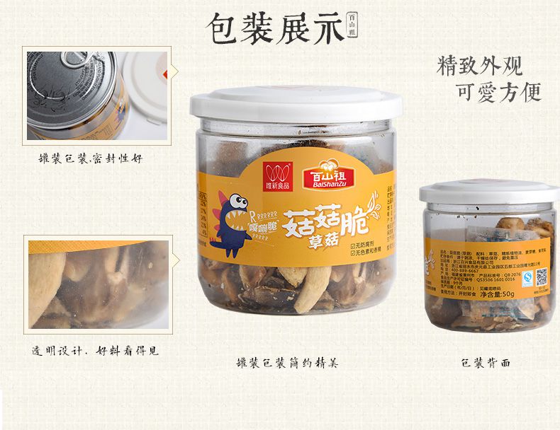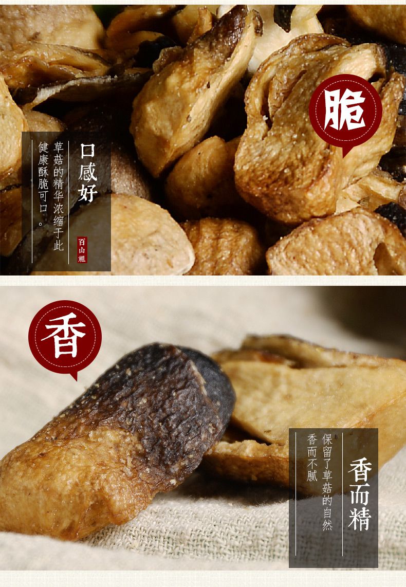 【百山祖】丽水特产 即食蔬菜干 脱水草菇脆片50g*2罐