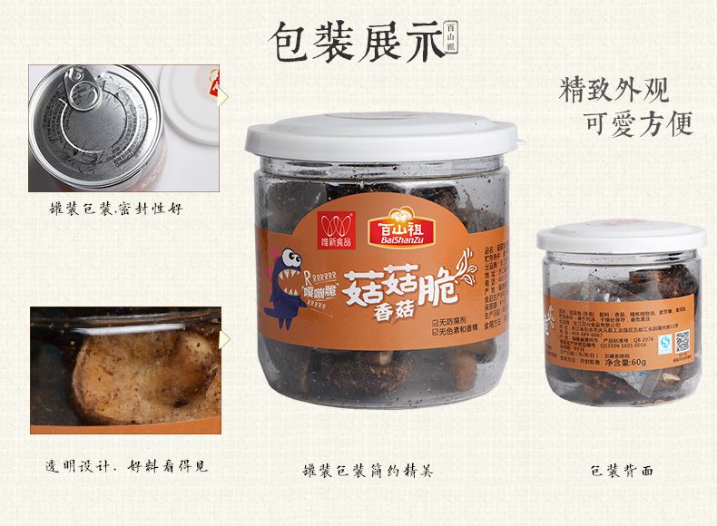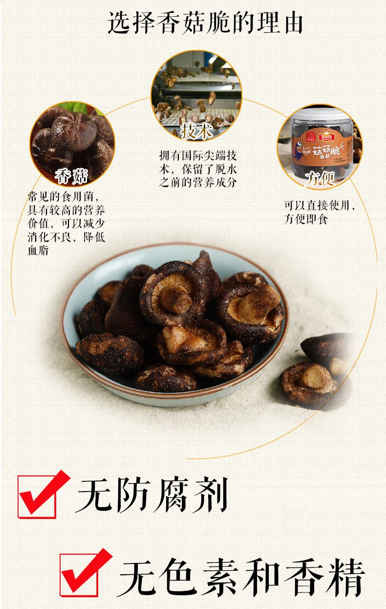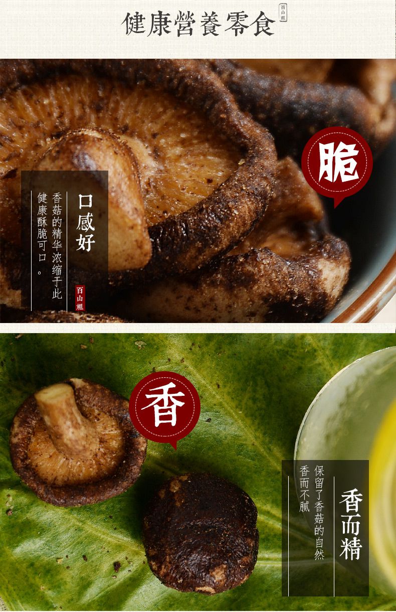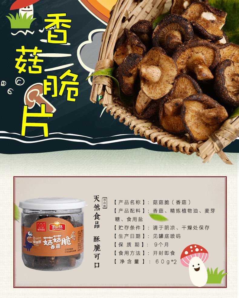 【百山祖】丽水特产 香菇即食蔬菜干 脱水香菇脆片60g*2罐
