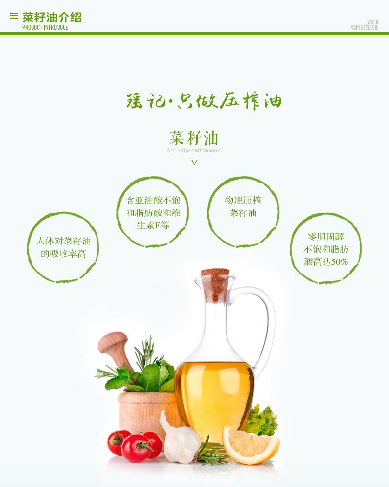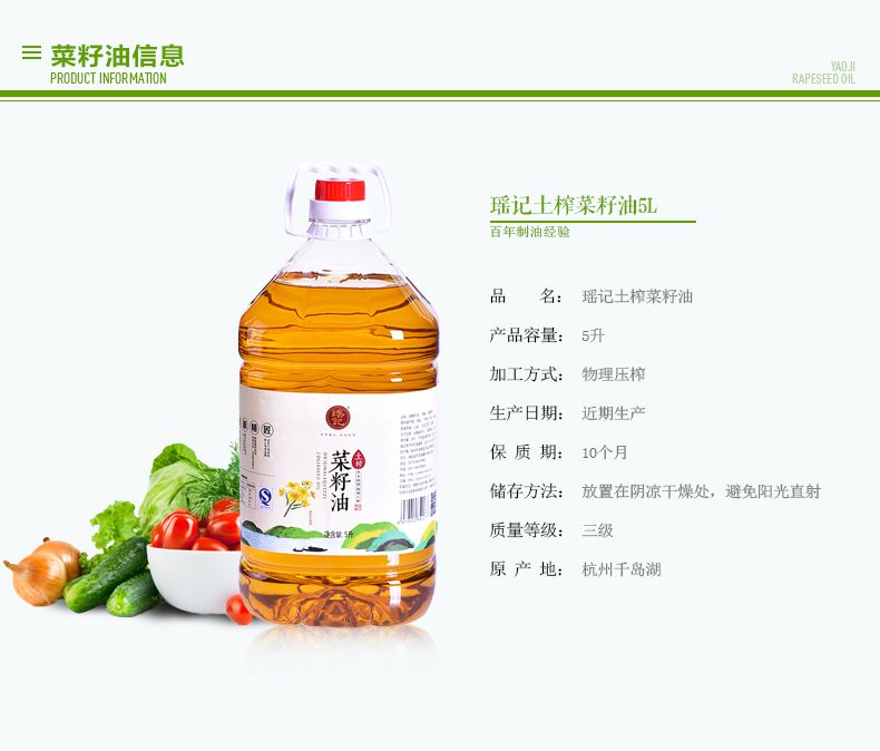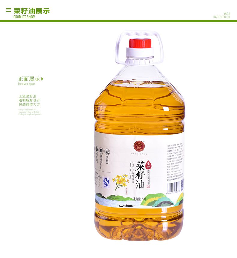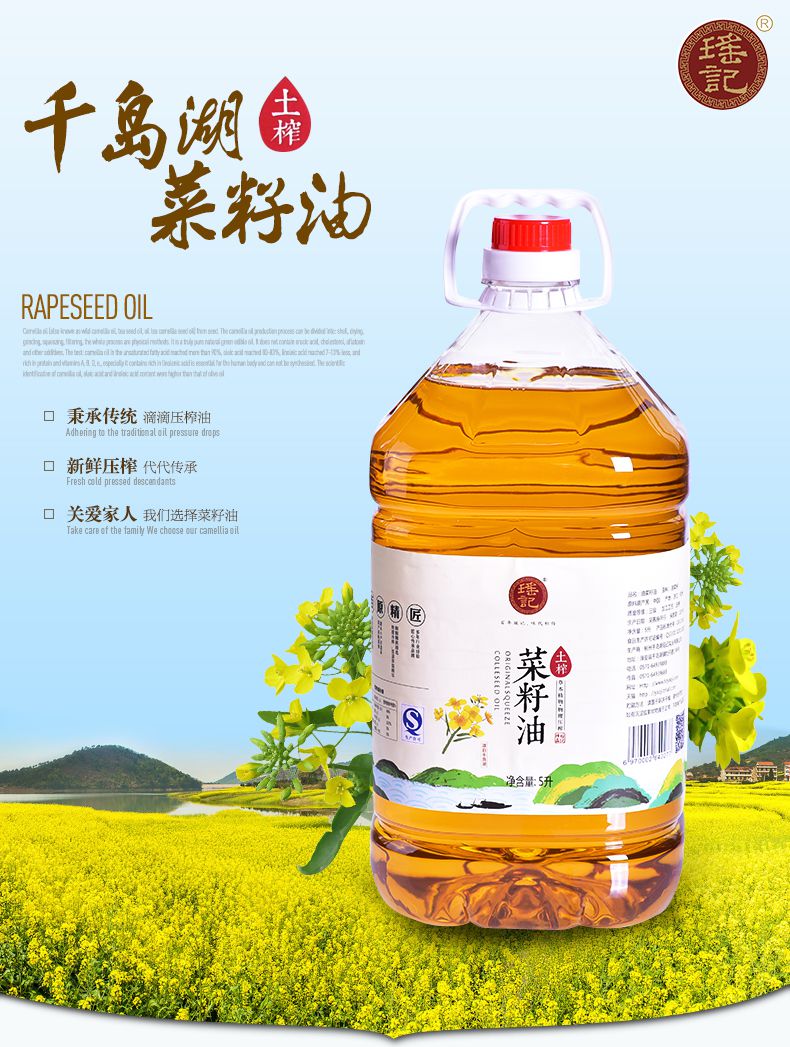 【瑶记】杭州特产 农家自榨菜籽油5L植物油