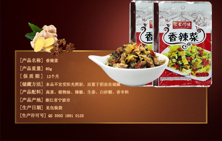 【三丰可味】宁波特产 咸菜酱菜下饭菜雪菜 香辣菜60g