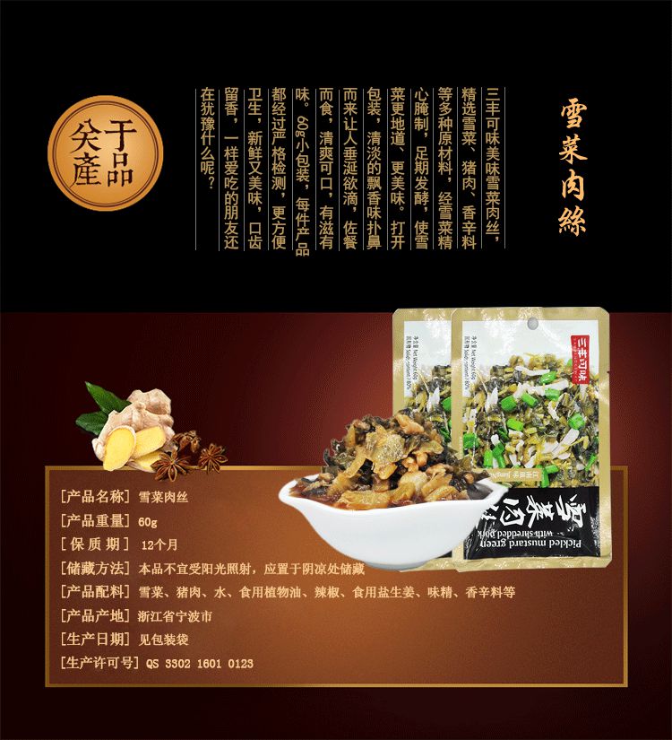 【三丰可味】宁波特产 咸菜 酱菜下饭菜雪菜肉丝60g