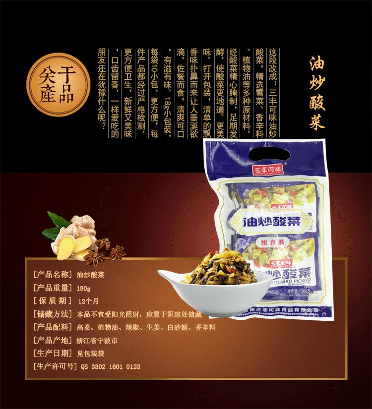 【三丰可味】宁波特产 咸菜酱菜下饭菜 油炒酸菜180g