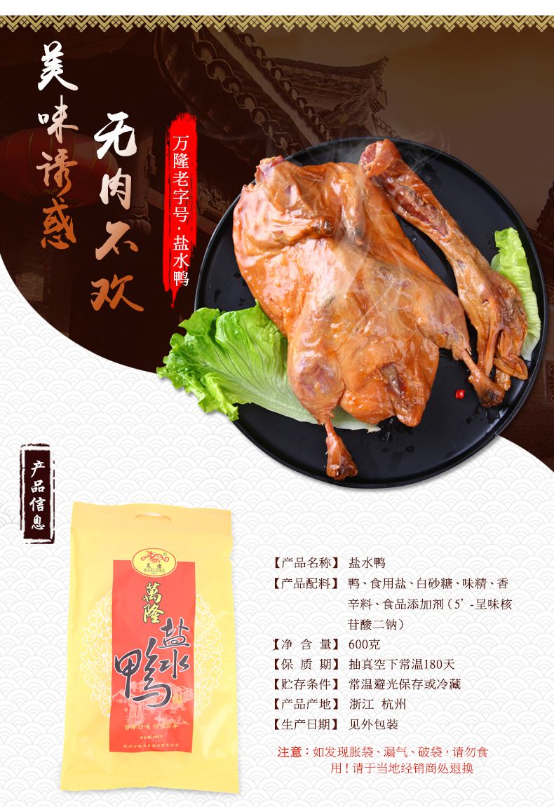 【万隆】杭州特产 盐水鸭600g