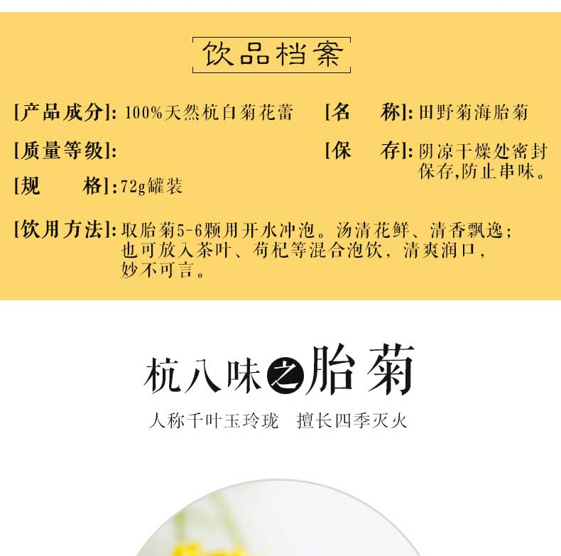 【田野菊海】嘉兴桐乡特产 杭白菊花茶 胎菊3.6kg