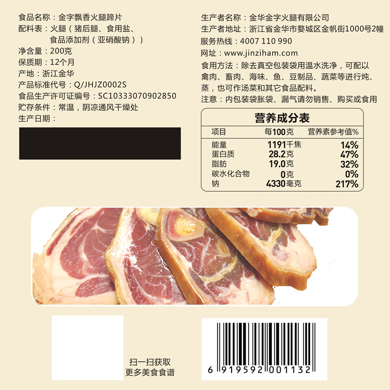 【金字食品】火腿蹄片200g