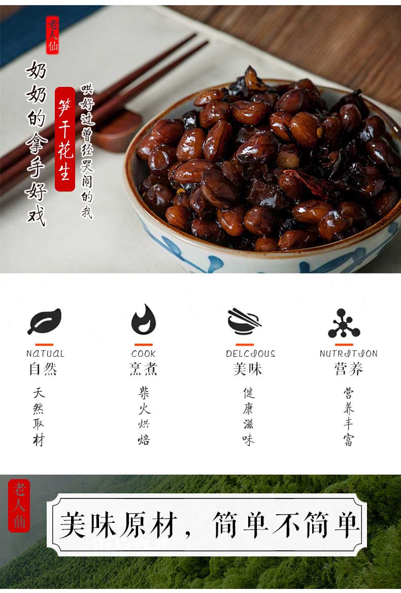 【老人仙】湖州特产 笋干花生 170g 经典原味